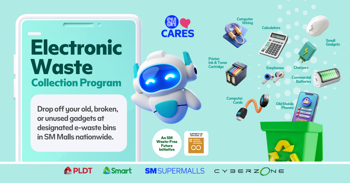The public may voluntarily drop off their e-waste during mall hours at designated bins in SM Supermalls nationwide. The EWC bins are located in Cyberzone areas and in information kiosks or concierge desks.