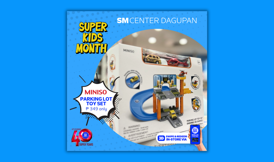 Visit Miniso at SM Center Dagupan and get a Parking Lot Toy Set for your Super Kids for only PhP349!
