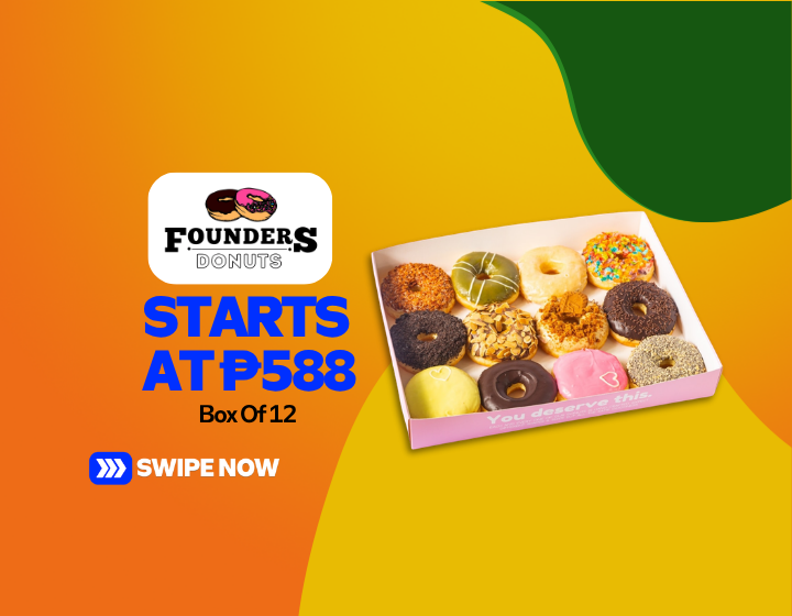 Something filling, something good, something sweet. Get all these in one box from Founders Donuts. Choose your flavors and grab a box of 12 starting at only P588. Popular options include their bestselling Lotus Biscoff Tiramisu, Oreo Dream, Strawberry Cream, and Matcha Green Tea.