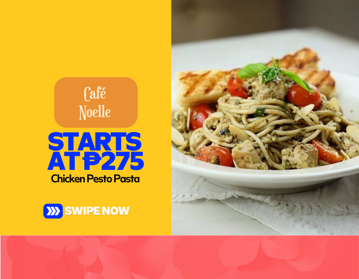 A creamy classic from Cafe Noelle, their Chicken Pesto Pasta features a basil and nut pesto sauce topped with chicken chunks and fresh cherry tomatoes for a refreshingly light bite. Get the solo plate starting at P275 or the large platter for sharing starting at P625.