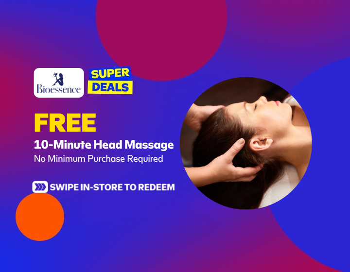 Stressed from work? Bioessence is giving you a FREE 10-minute head massage — no purchase needed.
