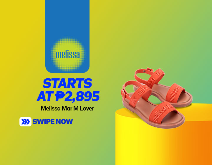 Available in Brown/Orange, Black/Multicolor, White/Silver, or Green starting at P2,895. Try it on for size at any SM branch of Clube Melissa!