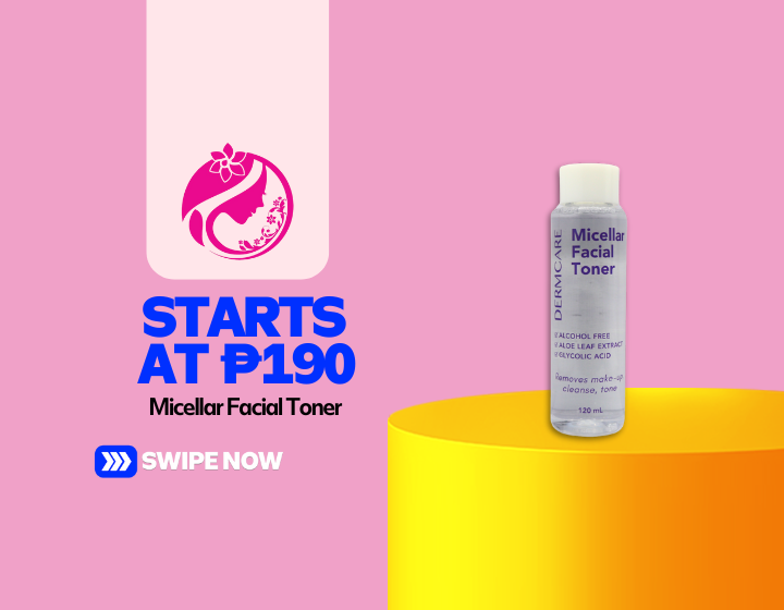 Fresh face and fresh vibes all the way, thanks to Dermcare's Micella Facial Toner. Starting at P190 per bottle, it lifts away dirt, oil, and makeup like magic, leaving your skin feeling light, clean, and glow-ready. Because at Dermcare, treatments don’t stop at the clinic. For skincare made simple and effective, grab a bottle of their Micellar Facial Toner today.