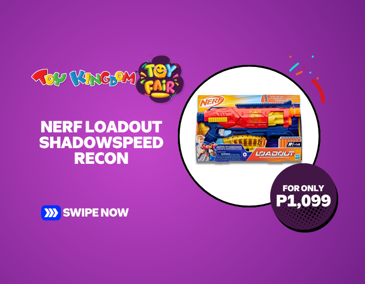 Blast into battle with Nerf Loadout Shadowspeed Recon for only P1,099. Speed and accuracy make every game more exciting. Available at Toy Kingdom in SM Malls.
