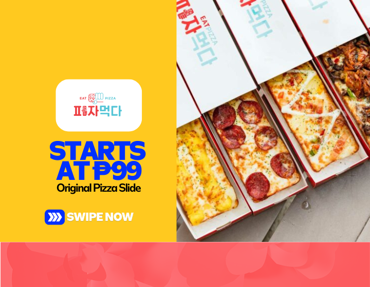 Korean pizza in a practical, portable packaging with a pocket-friendly price point. Say annyeong to EAT Pizza's 10-inch pizza slide, starting at only P99 for their original flavors. Instead of the traditional square bulky box, EAT Pizza's pies come in a sliding package that slides out with the pizza on a tray. Think of it as having a burrito or shawarma in hand—nifty! Each pizza slide features a thick crust that's crisp on the outside and doughy soft on the inside.