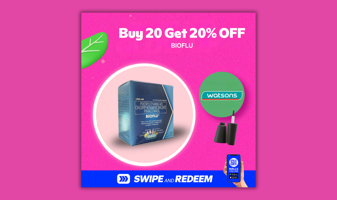 Visit Watsons at SM Center Dagupan and Enjoy 20% OFF when you buy 20 of BIOFLU!
