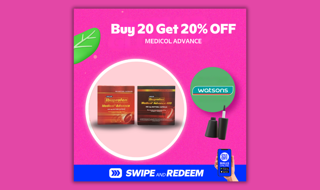 Visit Watsons at SM Center Dagupan and Enjoy 20% OFF when you buy 20 of Medicol Advance!
