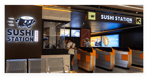 True to its name, Sushi Station evokes the charm of a Japanese subway station, complete with turnstiles that greet