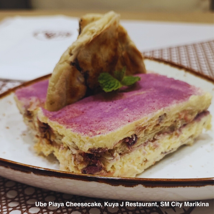 Indulge in a dessert that’s as comforting as it is inventive with Kuya J Restaurant’s Ube Piaya Cheesecake. This decadent treat blends the creamy richness of a classic cheesecake with the distinct earthy sweetness of ube. Each slice is served with crispy, flaky piaya layers, adding a delightful texture that contrasts perfectly with the smooth filling.