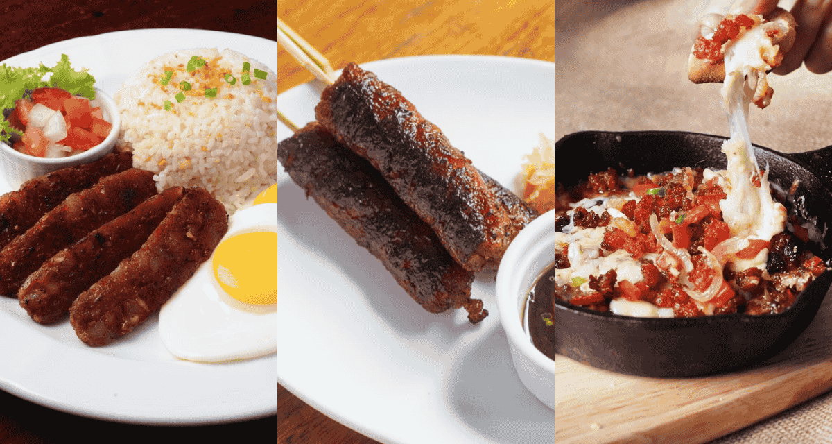 L-R: Cafe Adriatico’s Tamis Anghang Longganisa, George & Onnie’s Longganisa Skewers, and Tsokolateria’s Longganisa Fundido