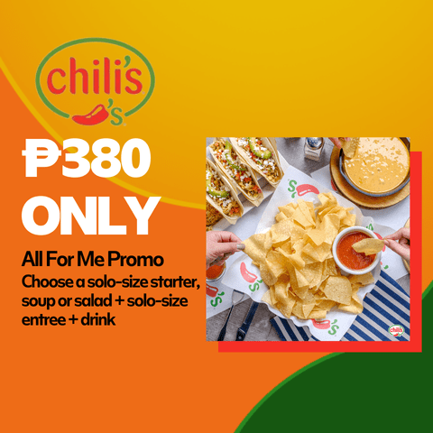 Sometimes, you want a delicious meal meant just for you, and only you! Well, Chili’s has got just the promo for you—for only P380, choose a solo-size starter, soup or salad, a solo-size entree, and a drink and enjoy! Available all day, every day until November 30, 2024!