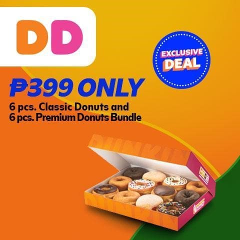 Dunkin’s Famous Bundle deal gets even better—instead of P420, treat yourself, your friends, and the whole family to a delicious selection of 6 Classic Donuts and 6 Premium Donuts for only P399!