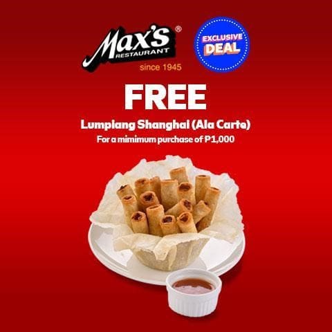 Treat your family to a Max’s Restaurant meal—you might just get a little thank you for your patronage! For a minimum spend of P1,000, you and your loved ones can enjoy a FREE ala carte serving of their famous Lumpiang Shanghai!