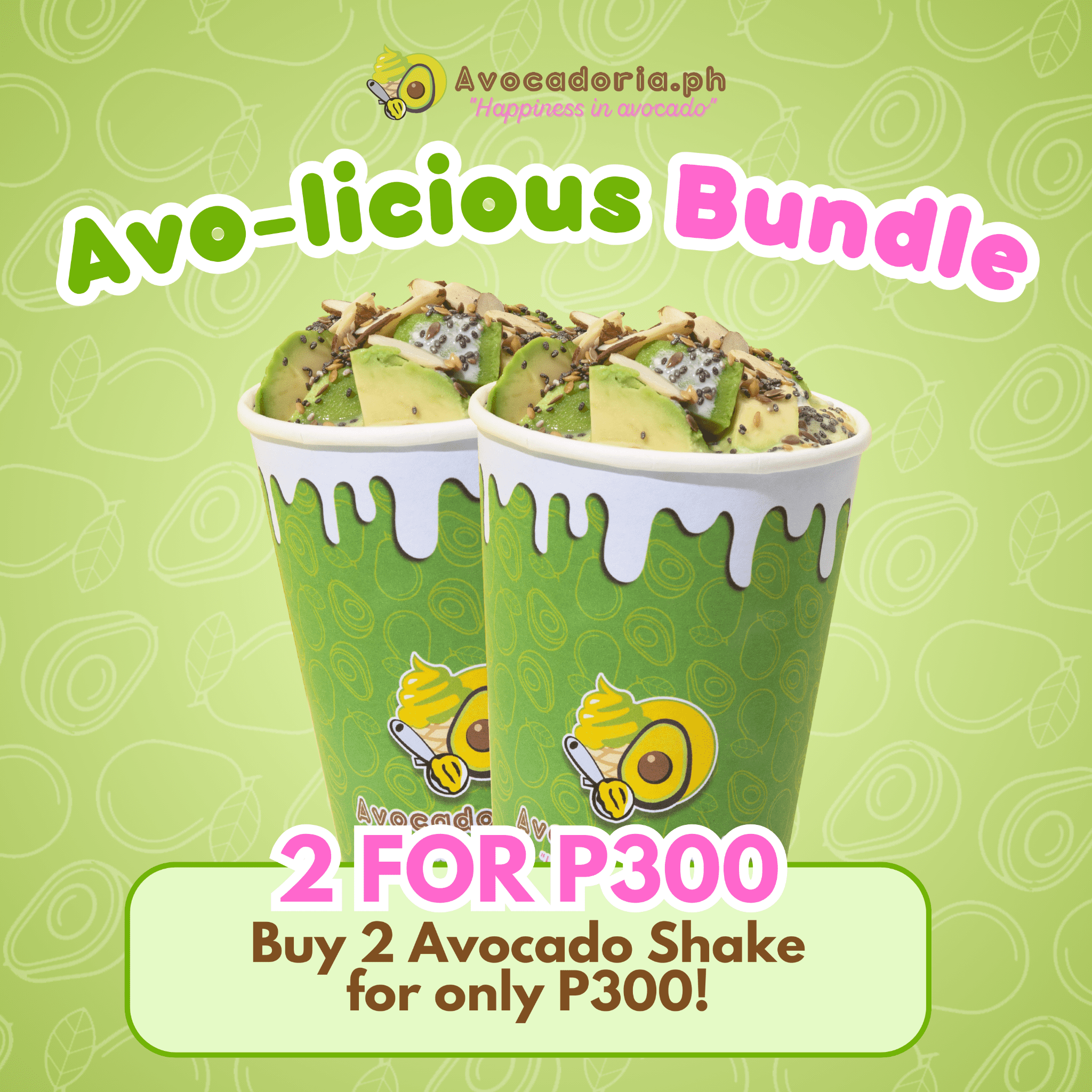 Share a sweet (and healthy!) treat with a special someone! Buy the Avo-licious Bundle at Avocadoria and get 2 refreshing, creamy and delicious Avocado Shakes for only P300!