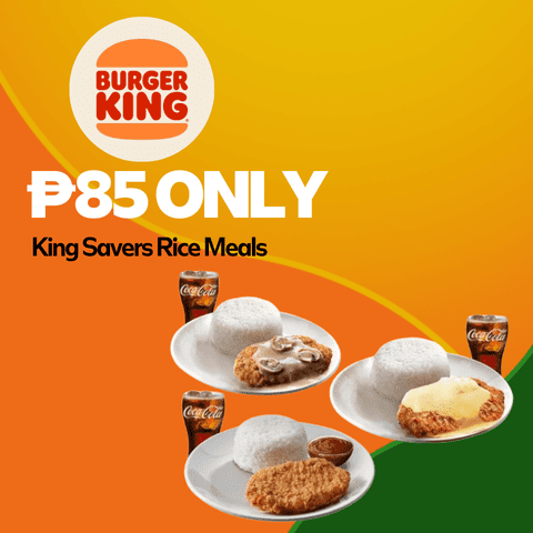 Eating like a King doesn’t mean breaking the bank! Enjoy delicious rice meal deals with Burger King’s King Saver Rice Meals! Choose from Mushroom Gravy Chunky Chicken Fillet, Creamy Parm Chunky Chicken Fillet, or Smoky BBQ Chunky Chicken Fillet for only P85 each—and get a free drink to boot! This deal runs until September 13, 2024 at all SM branches of Burger King, so don’t miss out!
