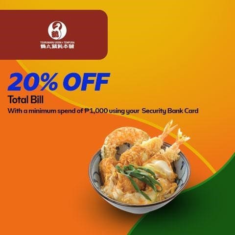Enjoy a complete selection of delicious Japanese favorites and get an incredible deal in return! Use your Security Bank Card when you dine at Tsurumaru Udon X Tempura on Mondays to Fridays until October 31, 2024 for 20% off on a total bill of P1,000 or more!