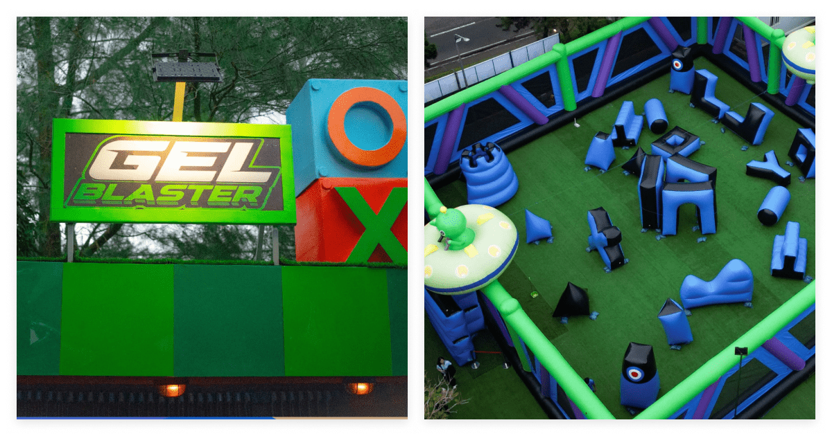 Once inside, the energy shifts immediately. Kids gravitate toward the Giant Slide—a towering donut-inflatable slide that, honestly, ends up being just as fun for adults. Nearby, the Inflatable Playground becomes a magnet for younger children who want to jump, crawl, and bounce without pause. And for families with tweens or teens, the Gel Blaster Arena brings out that competitive spirit in the safest, friendliest way possible.