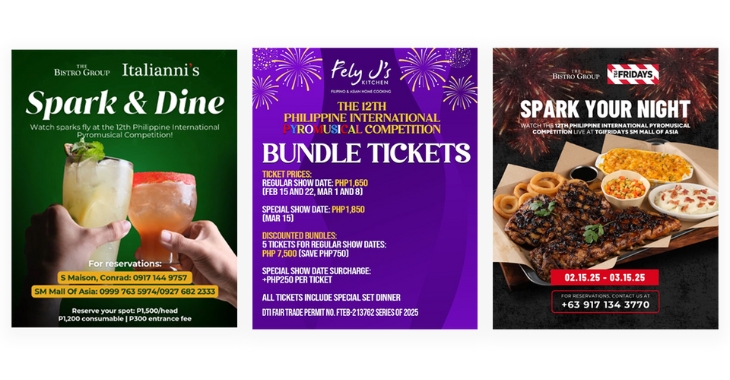 This year, the Philippine International Pyromusical Competition is elevating your viewing experience with an exciting lineup of partner restaurants, where you can wine, dine, and enjoy the show in style! From casual cafés to upscale dining spots, there's a perfect place to savor delicious food while watching the night sky light up.
