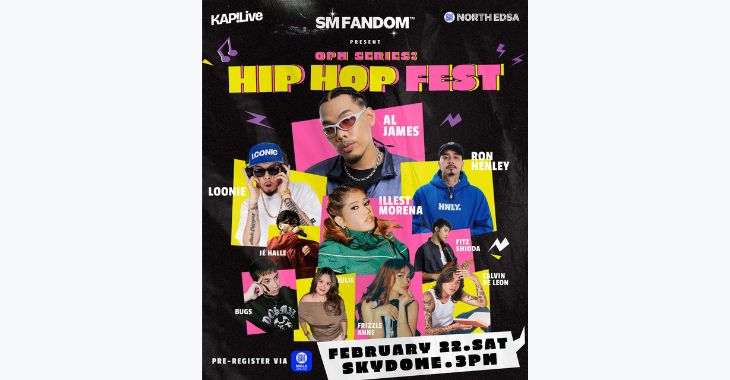 Music fans are in for an amazing weekend as the best names in the country’s hip-hop industry converge for a day for SM Fandom’s “OPM Series: Hip Hop Fest” this Saturday (Feb 22), 3 pm, at SM North EDSA’s Sky Dome.