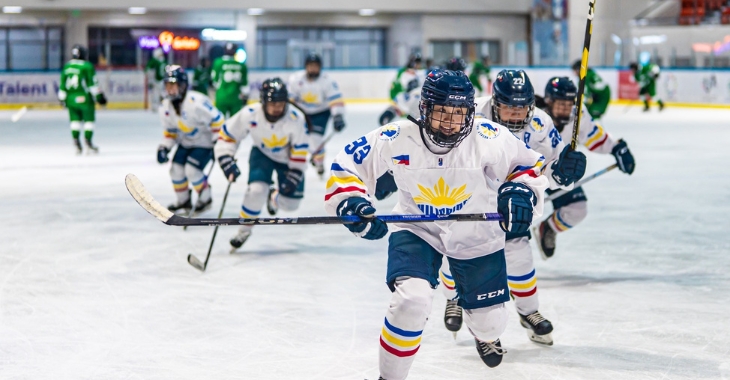 The Philippine women's ice hockey team skates powerfully, showcasing the determination that led to their 2025 IIHF Women's Asia Cup gold medal. Photo by Norton Qua.