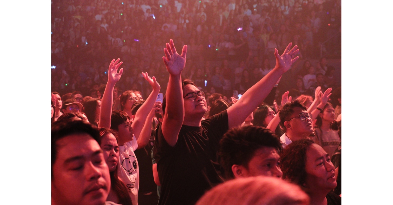Lights flood the SM MOA Arena, revealing a sea of enthusiastic worshipers.