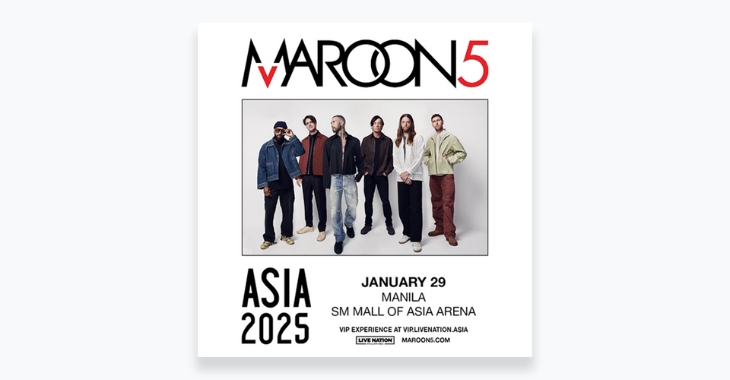 Experience the infectious energy of Maroon 5 live in concert as they return to Manila. Sing along to their chart-topping hits like "Sugar," "Memories," and "Girls Like You," and witness the band's signature charisma.