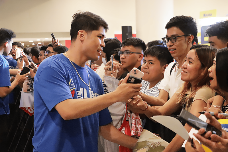 Alas Pilipinas' Marck Espejo engages with enthusiastic fans during a meet-and-greet at the Volleyball Nations League (VNL) 2024, held at the SM Mall of Asia Arena.