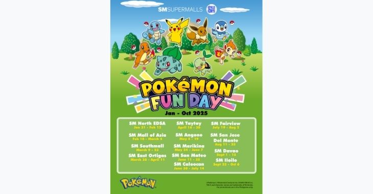 The Pokémon Fun Day caravan will go on rounds in different SM malls in Metro Manila, Rizal, Bulacan, Iloilo, and Davao from January 2025 until October 2025.