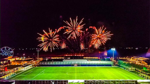 The MOA Football Pitch, a world-class, full-sized field with 1,800 seats, can host global tournaments, college games, and exhilarating competitions.