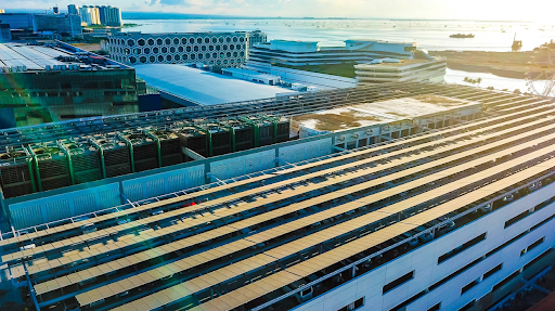 SM Prime demonstrates its dedication to sustainability with a 3-megawatt peak solar photovoltaic (PV) rooftop, effortlessly integrated into the MOA Sky's design.