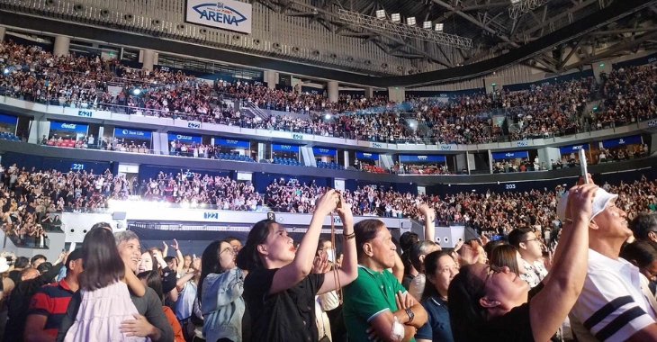 Fans at the SM Mall of Asia Arena cheer with emotion as they applaud the band’s performance.