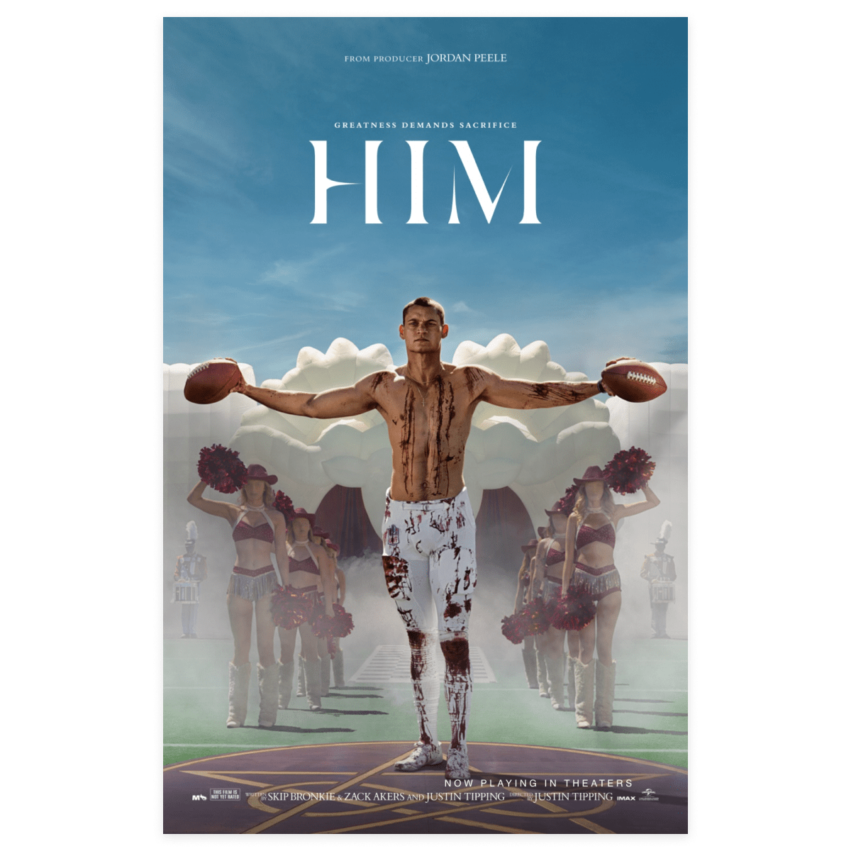 Cameron Cade takes center stage in HIM, a dark, surreal sports-horror thriller where ambition collides with ritual and madness. Once an aspiring quarterback inspired by his idol Isaiah White, Cam finds himself drawn into a nightmare of conspiracies, cult-like traditions, and blood-fueled rituals that promise greatness at an unthinkable cost. Blurring the line between athletic sacrifice and supernatural corruption, the film escalates into a violent, hallucinatory showdown between legacy and free will. Equal parts psychological horror and grotesque sports fable, HIM is an unsettling exploration of what it truly means to be the “Greatest of All Time.”