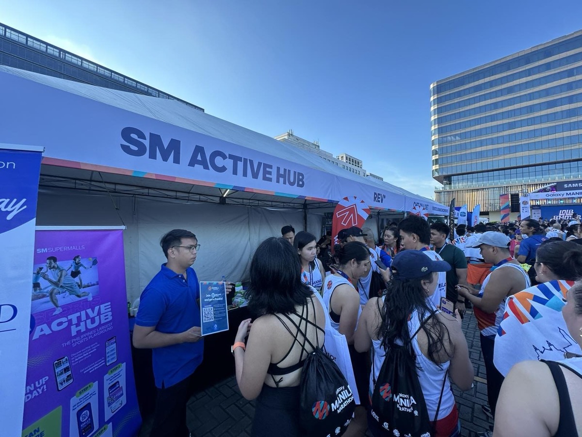 Runners visit the SM Active Hub booth at the Manila Marathon to sign up for exclusive perks, freebies, and special promos available through the SM Malls Online app.
