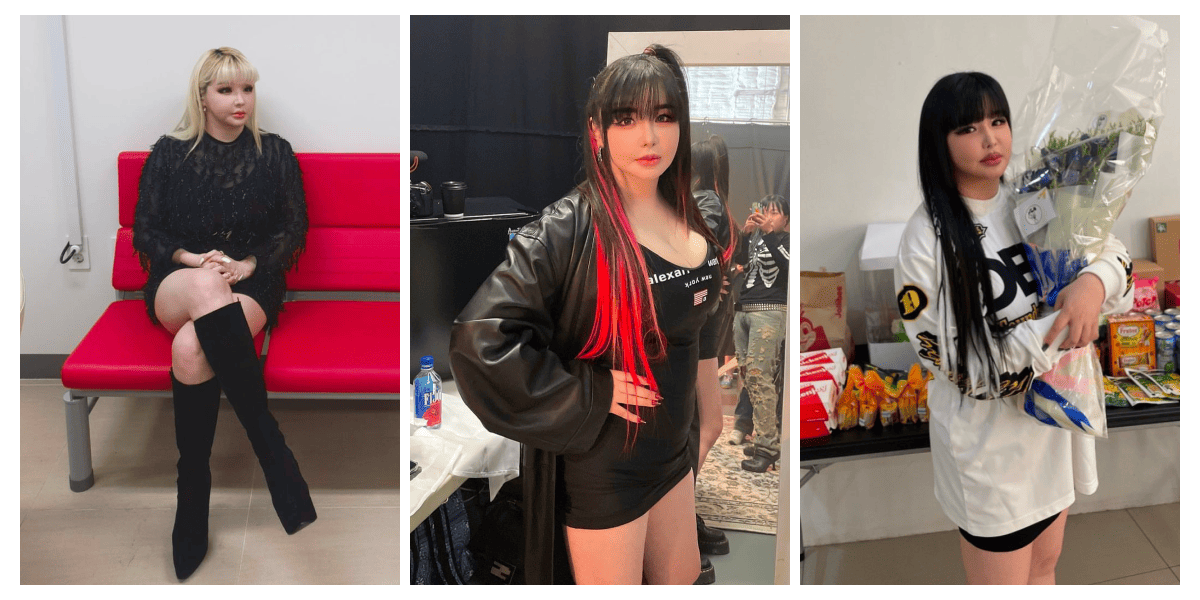 Bom, the queen of chic and glam, is known for slaying mini dresses paired with thigh-high boots. Much like CL, she often sticks to a sleek black-and-white color palette, as seen on her Instagram feed. Bom seems to fancy hoop earrings too, which add another layer of sophistication to her glam rock and head-turning outfits.