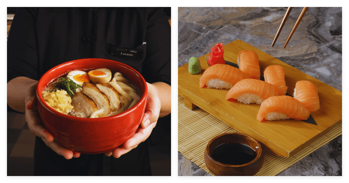 Tonkotsu udon and salmon nigiri—perfect for winding down Valentine’s Day at Botejyu.