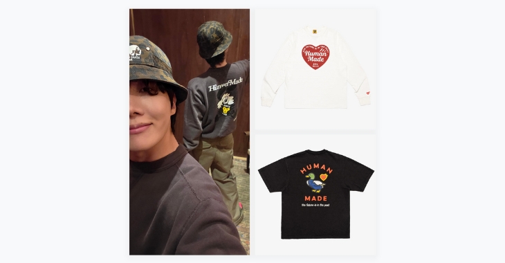In this photo, he’s rocking the HUMAN MADE x VERDY TSURIAMI Sweatshirt—a standout piece from the Japanese brand HUMAN MADE. Unfortunately, it’s already sold out on their website, but don’t worry! Commonwealth, which you can find in SM Aura, still has a selection of HUMAN MADE shirts and sweatshirts up for grabs. And hey, who knows? Wearing a brand Hobi loves might just make you stand out in the crowd!