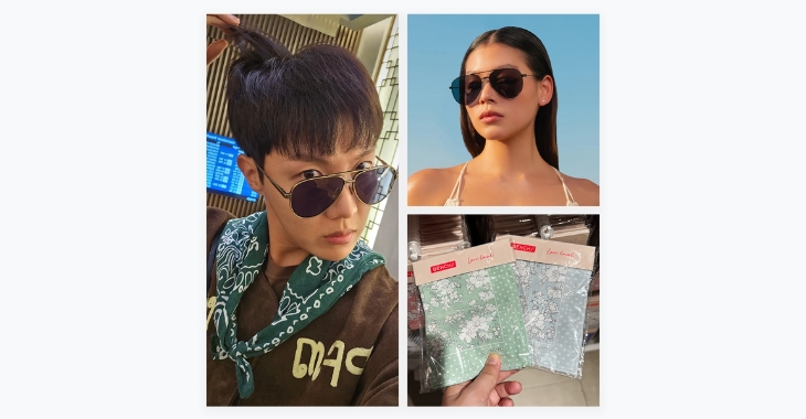 J-Hope’s Look (image from J-Hope’s Instagram page: Louis Vuitton Ride Sunglasses and Human Made Field Bandana