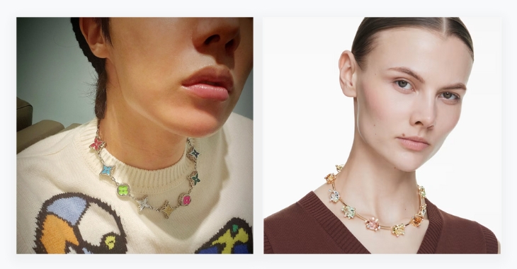 Take this photo, for example—our Louis Vuitton ambassador is shining in the Monogram Big Party Necklace, a bold piece that screams luxury. But if you’re looking for a more budget-friendly alternative, Swarovski’s Gemma necklace is a great pick for that elegant yet stylish vibe.