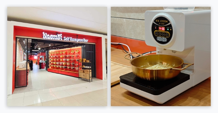 At Naembi, you get to customize your bowl of Korean instant noodles by choosing from a variety of ramyeon brands, toppings, and add-ons like cheese, eggs, dumplings, or even rice cakes (tteok). The setup is simple yet exciting! Grab your preferred ramyeon, cook it at the burner machines available, and enjoy piping hot noodles straight from the pot, just like in K-dramas!