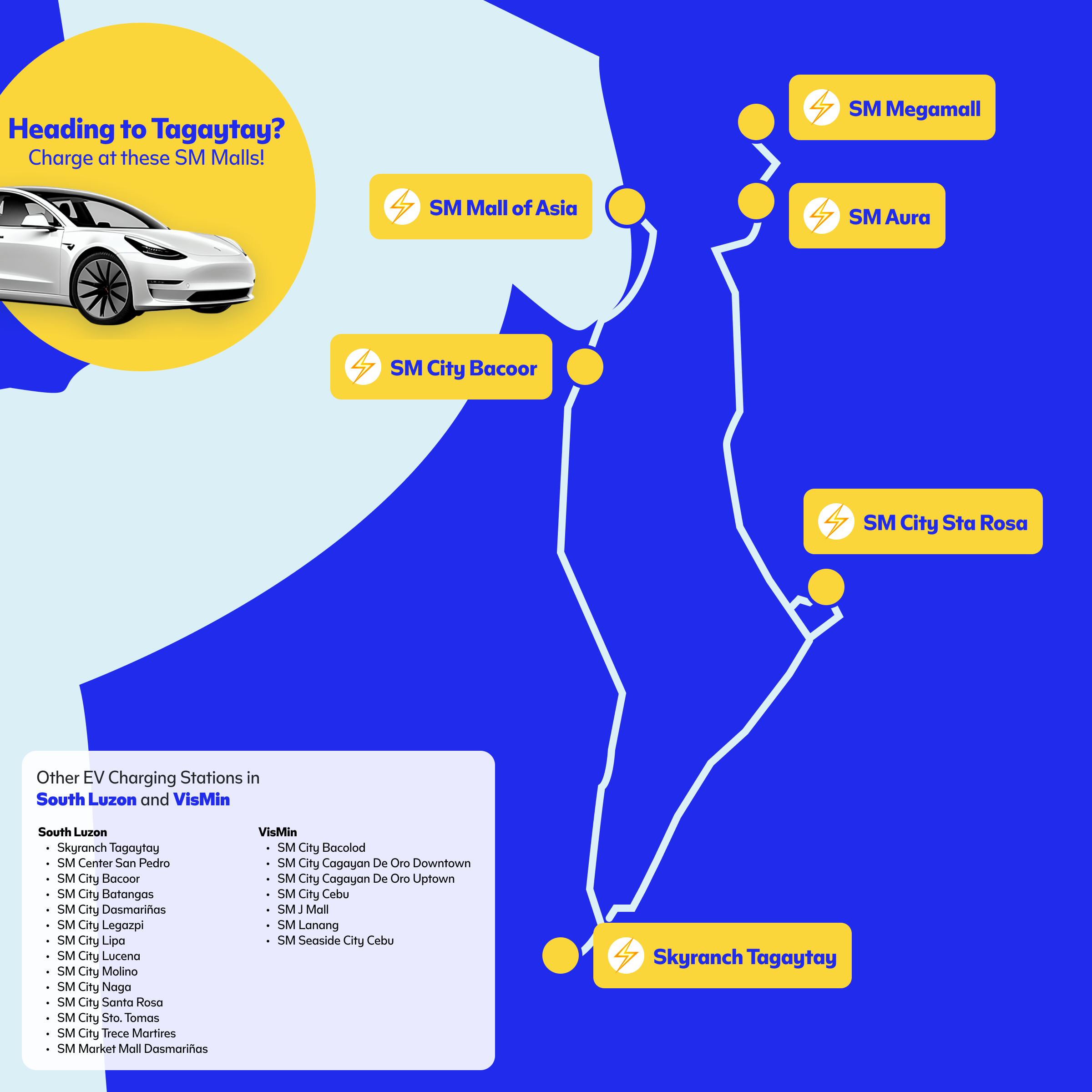 If you’re wondering where to charge electric vehicles, the answer covers nearly every major highway and city: just look for the nearest SM.