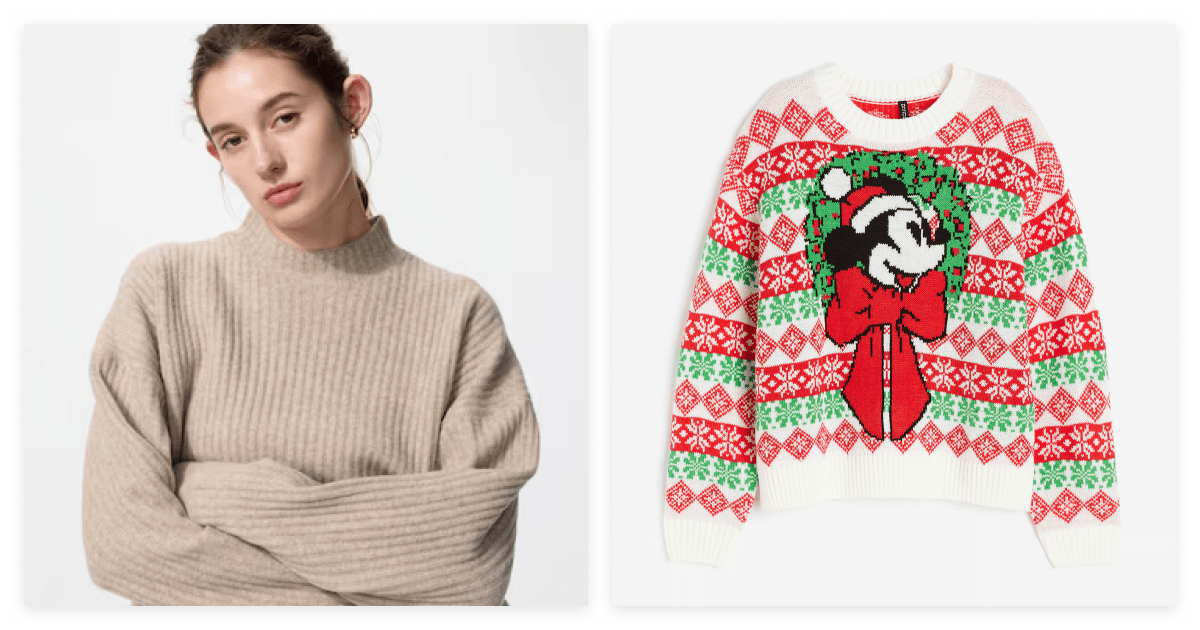 Keep warm with the (left) Souffle Yarn Mock Neck Sweater from Uniqlo or this cute (right) Jacquard-knit Jumper in Mickey Mouse print from H&M.