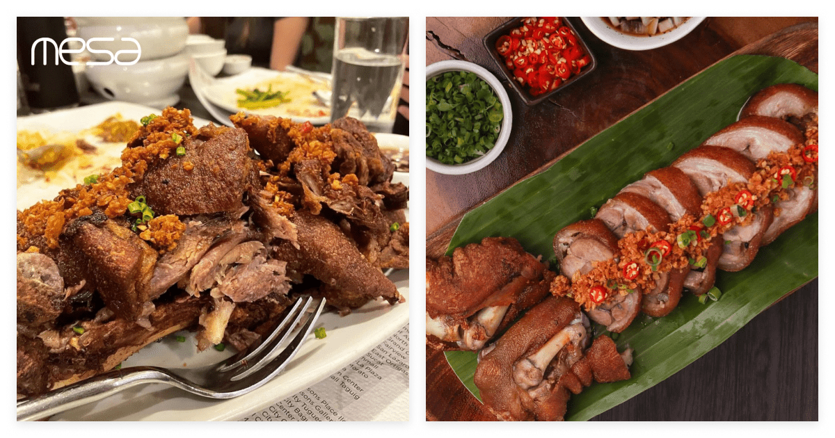 Mesa brings Filipino cuisine into the modern age while staying rooted in tradition. Their crispy pata is a standout: deep-fried pork leg with golden, crackling skin and tender, flavorful meat inside. It’s a classic centerpiece for Filipino feasts, representing the country’s love for hearty, indulgent dishes that bring people together.
