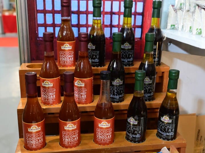 Spiced and traditional coconut vinegars are available for tasting and purchase.