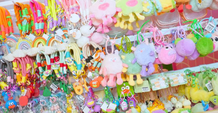 Choose from a colorful selection of plushies and trinkets.