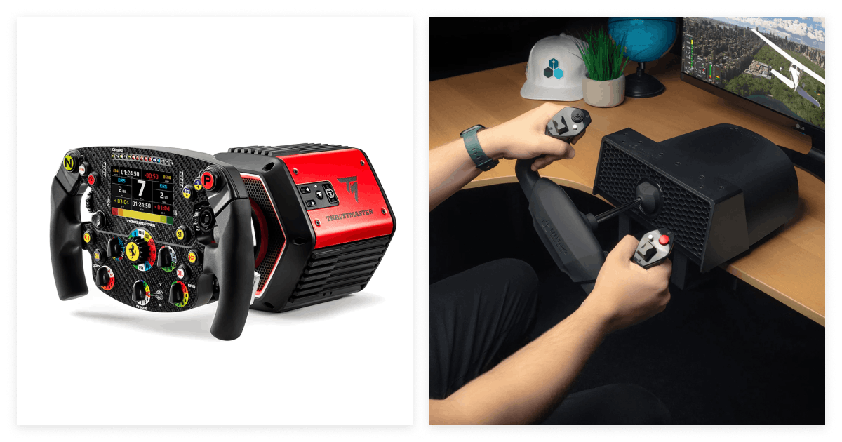 L-R: Thrustmaster T818 Ferrari SF1000 Simulator and the Honeycomb Aeronautical Alpha Flight Controls Lite are also available at DataBlitz