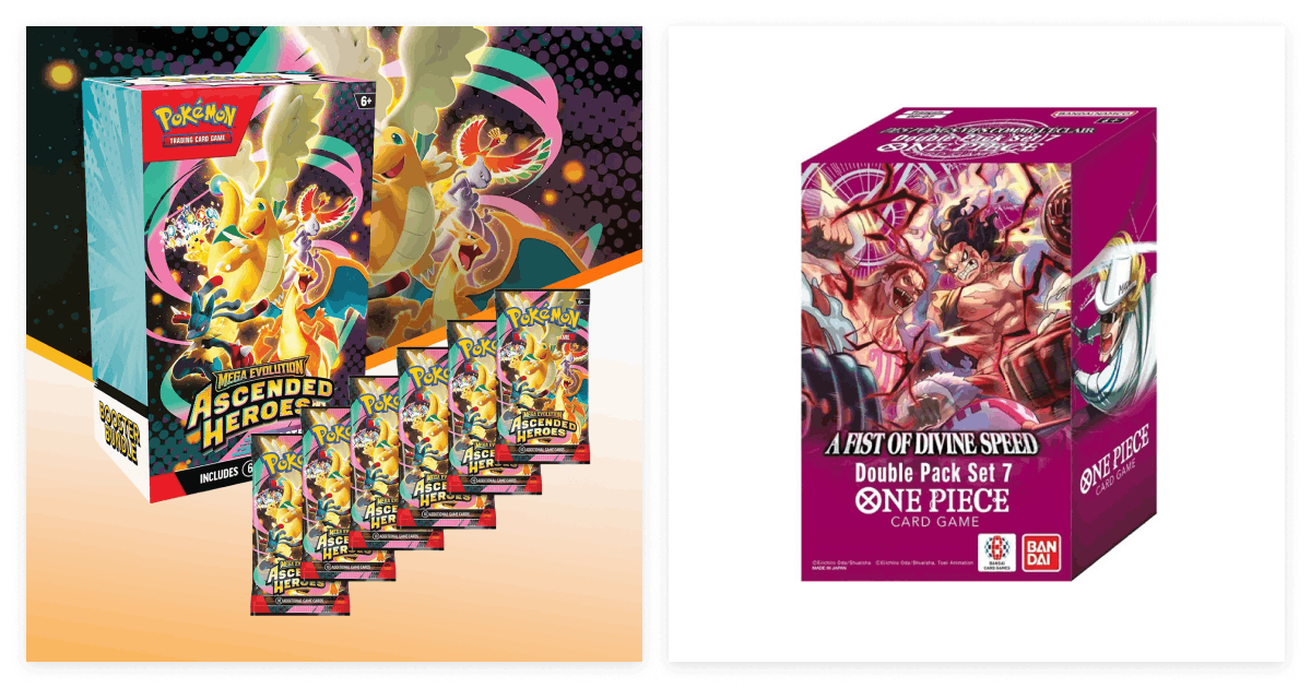 Nothing hits like cracking open a fresh pack in the middle of a mall. The Pokémon TCG ME2.5 Mega Evolution Ascended Heroes 6 Booster Bundle is exactly that rush, perfect for those chasing rare Mega pulls. The One Piece Card Game Double Pack Set is for Straw Hat stans building their first competitive deck, while the Yu-Gi-Oh! Duelist's Advance Booster Box is for duelists who take their synergy seriously. The Gundam Card Game Iron-Blooded Orphans 10th Anniversary set is also one to watch, built for fans who want strategy with a side of nostalgia.
