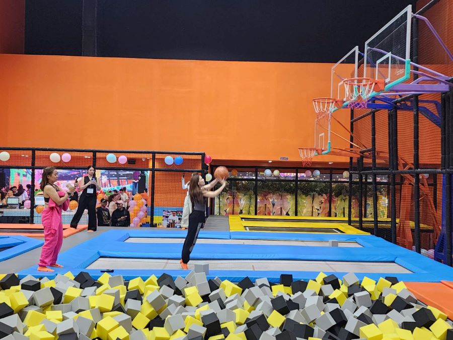 Guests can jump around and play basketball at the “Trampoline Park.”