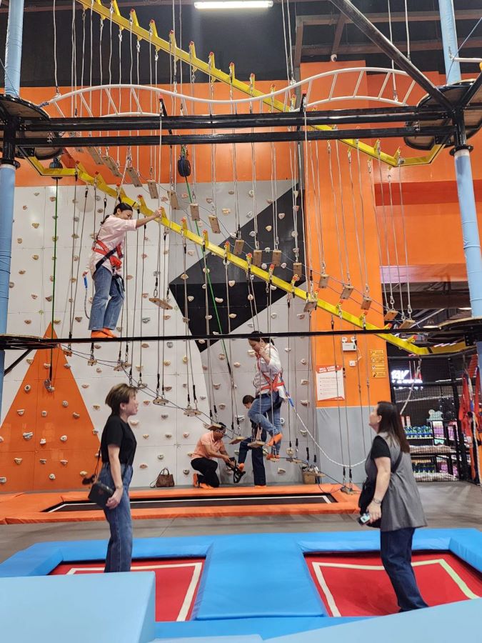 Guests can then head towards the “Trampoline Park,” which has an obstacle course, wall climbing area, and mini zip line – perfect for adrenaline junkies of all ages.