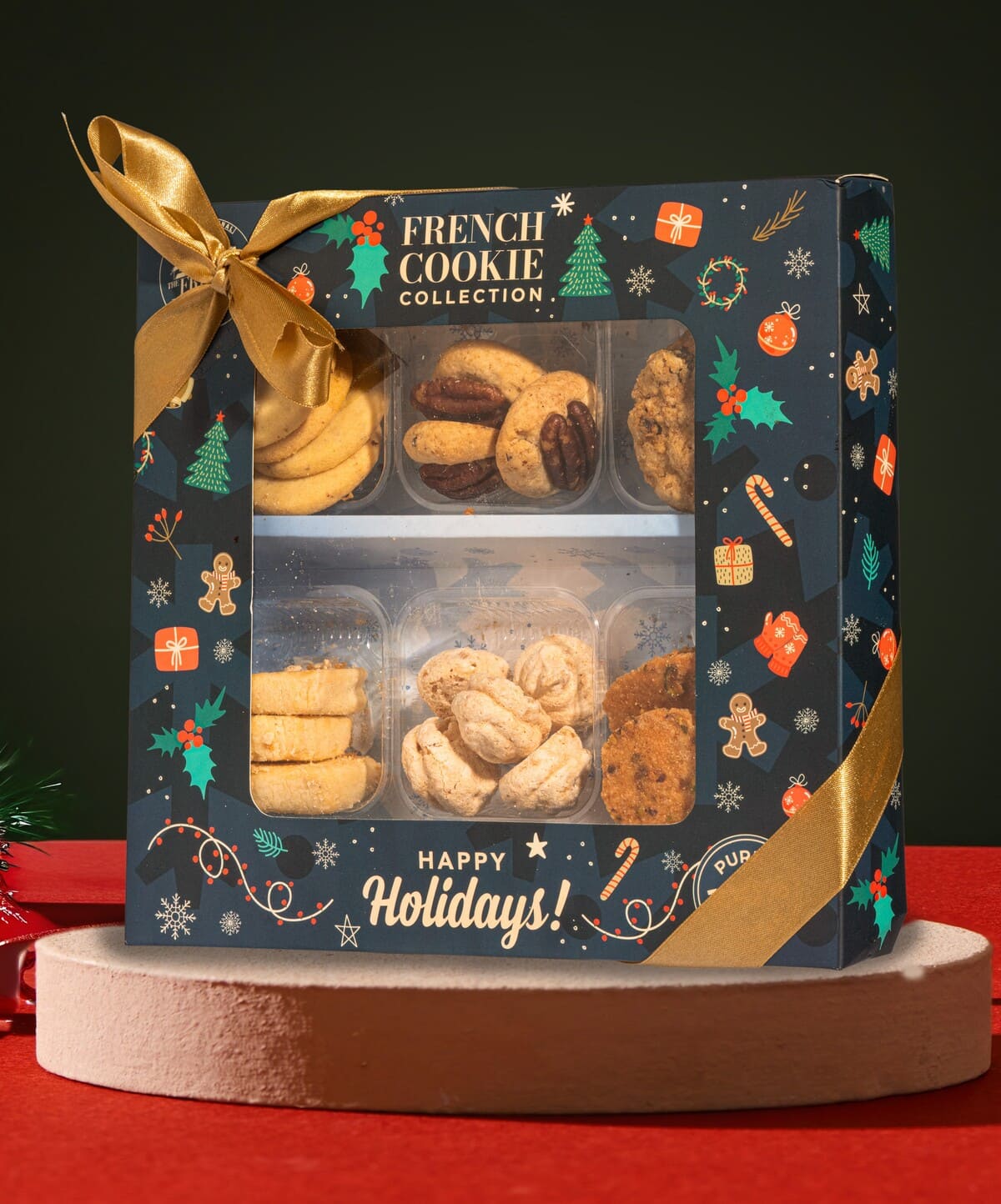 French Cookie Collection. Packed in an elegant sampler box, this collection includes a few pieces each of Oatmeal Raisin, Maple Pecan, Sable, Vanilla Diamond, Macaron Almond Meringue, and Pistachio Tuile cookies that should basically introduce you to the world of French cookies.