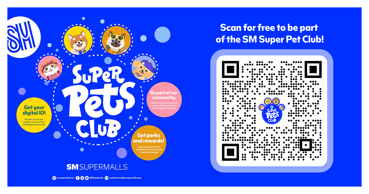 From dining at pet-friendly restos to grooming, shopping for treats, and playtime at the Paw Park, SM Supermalls is perfect for pet days out. Don’t forget that you can also join the SM Super Pets Club for perks, events, and rewards—and connect with fellow furparents in the Facebook Community by scanning the QR code below.